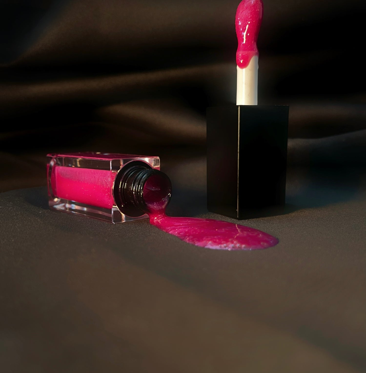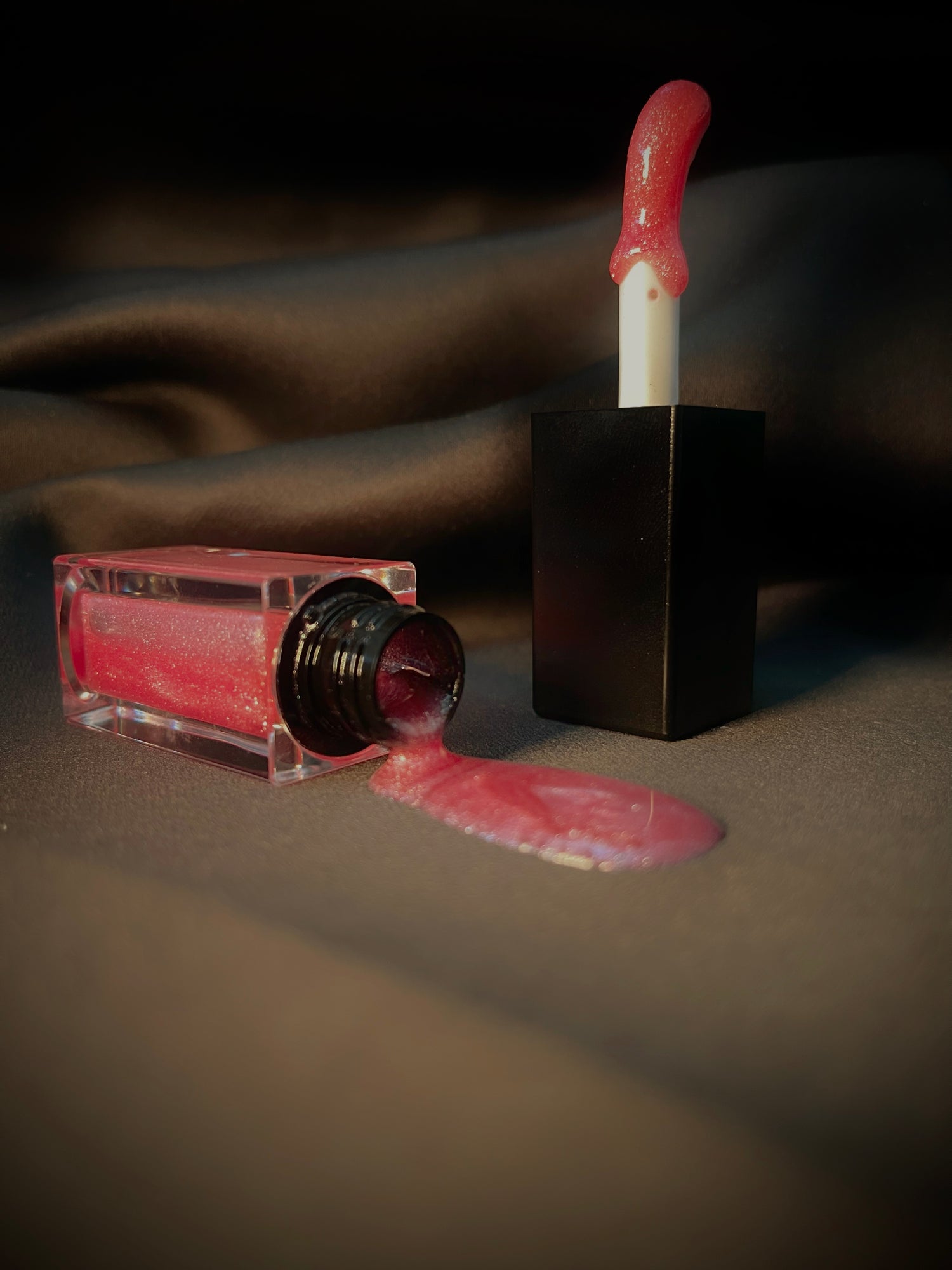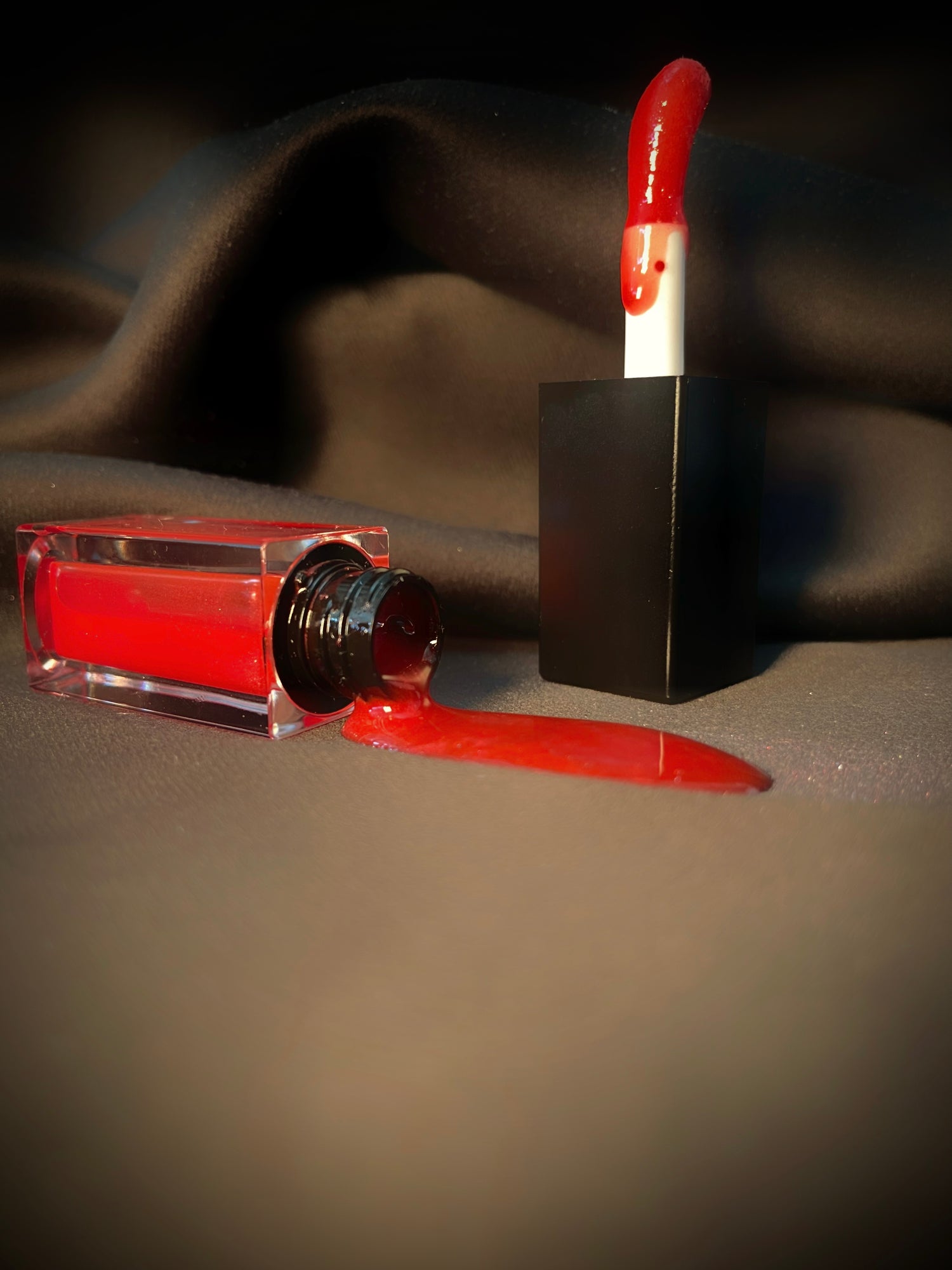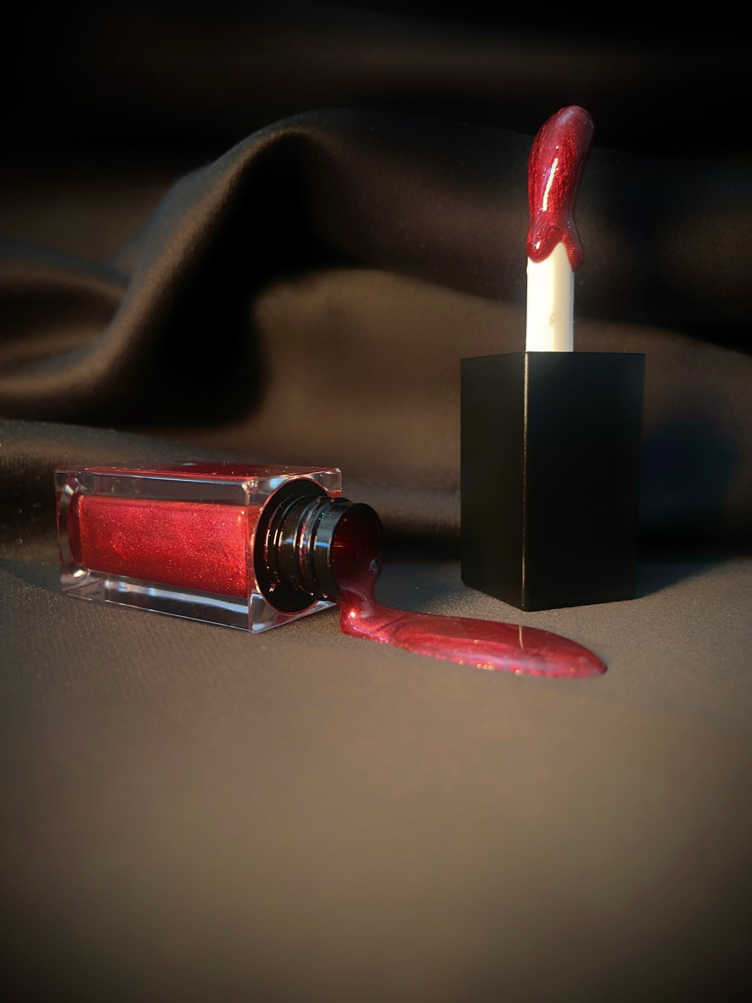 Deep red satin dress, warm lights, and jazz.